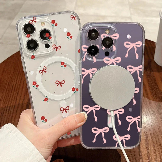 Y2K Pink Bow Flower Phone Case For iPhone