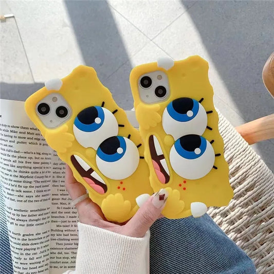 3D Cute Cartoon Big Eyes Spongebob Phone Case For iPhone