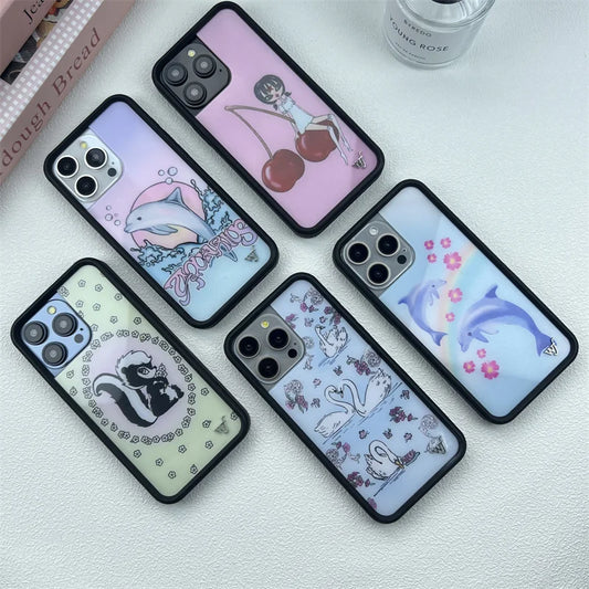 Cute Animal & Cherry Print iPhone Case – Wildflower Cartoon Design