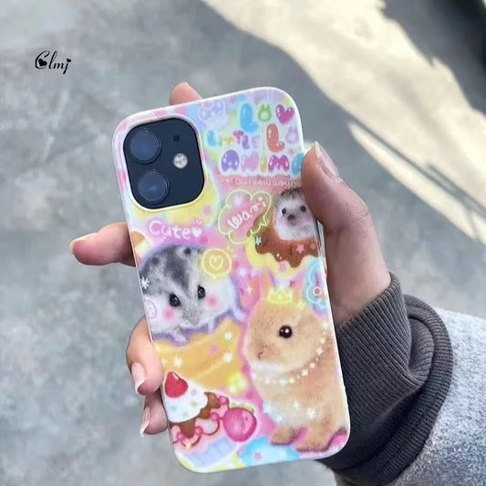 Cute Cartoon Graffiti Rabbit Little Bear House Gift Star Pattern Sliver Edge Protective Case