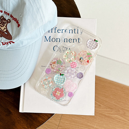 Adorable Transparent Decorated with Patterned Buttons Fun Look Phone Case