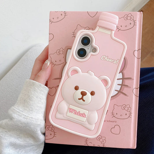 Kawaii 3D Cartoon Bear Wine Bottle Soft Silicone Phone Case