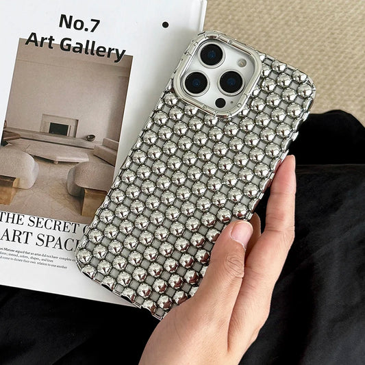 Fashion Platinig Silver Pearl Hollow Out Phone Case