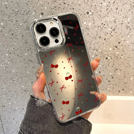 Cute Cherry Bow Mirror Phone Case For iPhone