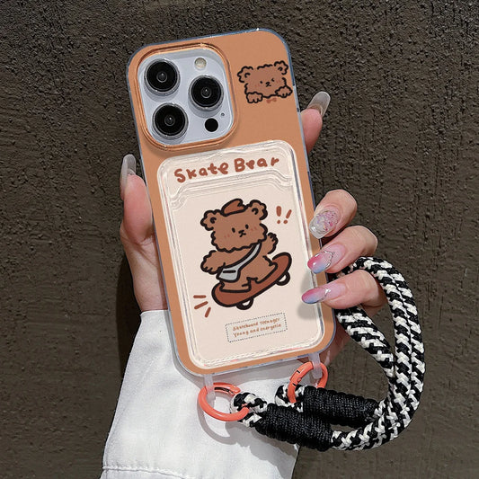 Korean Cute Cartoon Bear Card Wallet Phone Case With Bracket For iPhone