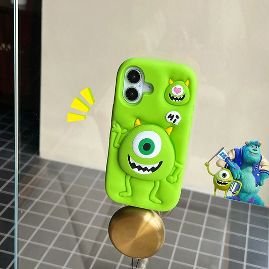 Funny Cartoon Monsters Cover With Stand Holder Soft Silicone Case For iPhone