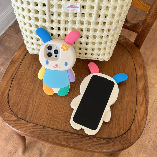 Japan Ins Kawaii 3D Cartoon Rainbow Bunny Rabbit Soft Silicon Phone Case Shockproof Cover For iPhone