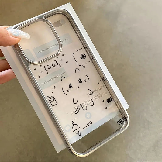 Ins Korean Cute Black Line Rabbit Cat Lovely Phone Case For iPhone