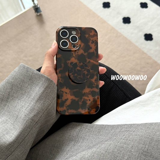 Stylish Dark Color Tortoiseshell Amber Soft Glossy Cover Case For iPhone