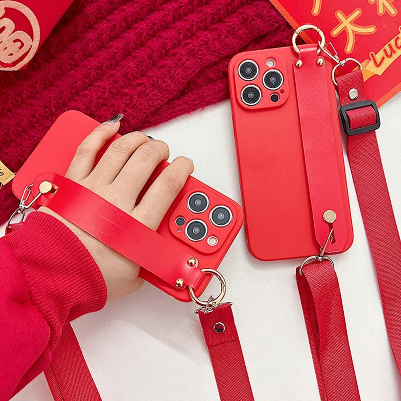 Candy Color Wrist Strap Holder Lanyard Case For iPhone