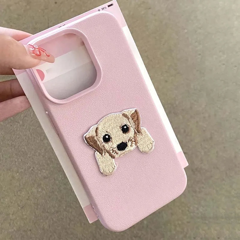 Cute Cartoon Embroidery Puppy Phone Case For iPhone