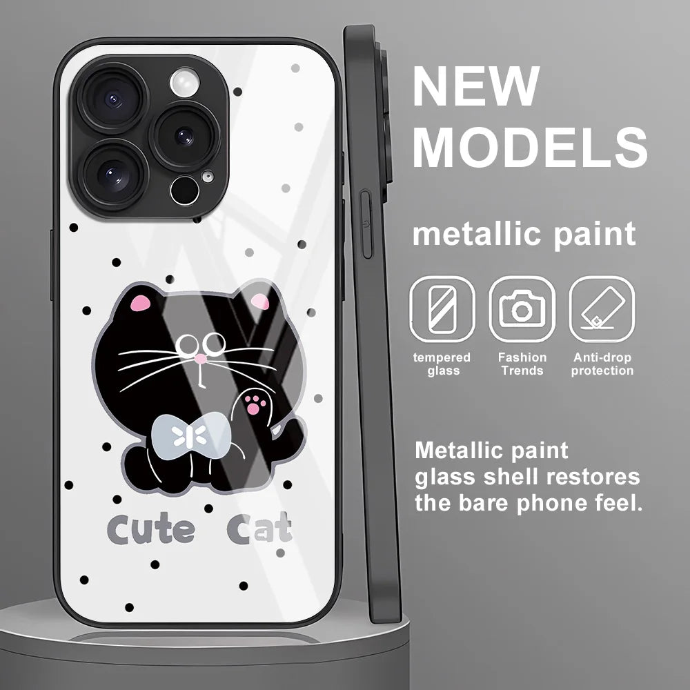 Protect your iPhone with style using this charming cat-themed phone case. Featuring tempered glass construction, it delivers superior shock absorption and impact resistance for everyday drops and bumps. The reinforced design safeguards your device while the adorable feline aesthetic adds personality to your phone. Durable, reliable, and designed for cat lovers who refuse to compromise on protection.