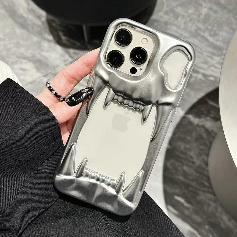 Fashion Metal Matte Silver Tiger Tooth Heat Dissipation Phone Case