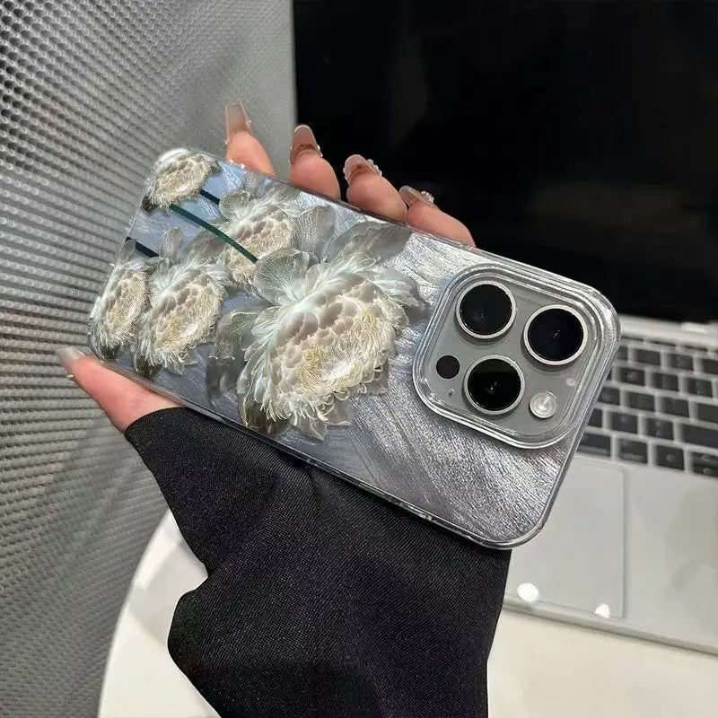 Five Golden Lotus Pattern Phone Case for IPhone Feather Texture Hard Cover