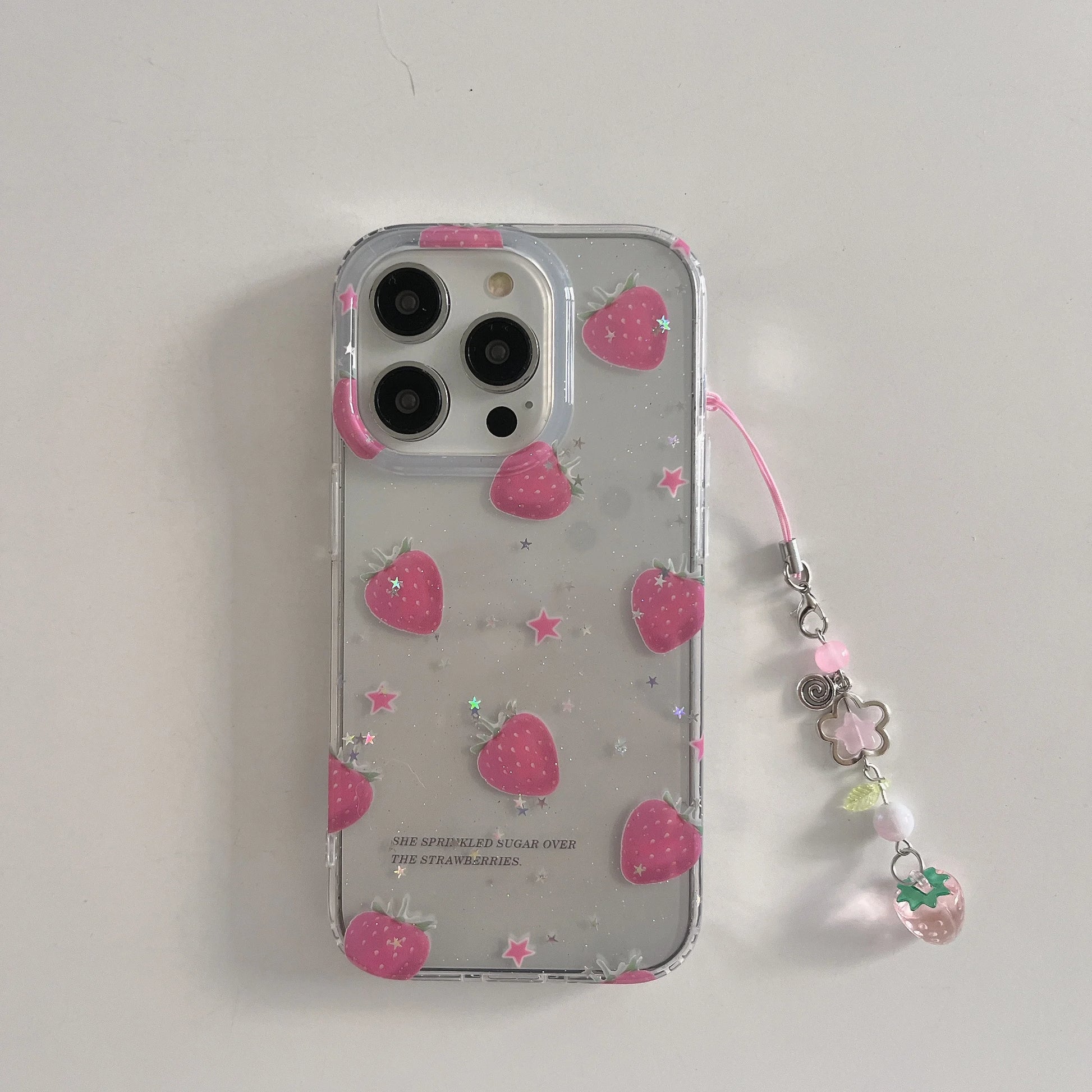 Elevate your device protection with this eye-catching glitter strawberry phone case, engineered for durability without sacrificing style. The 3D dangle charm adds playful dimension, while advanced shockproof technology safeguards against drops and impacts. Precision-engineered cutouts ensure seamless access to all ports and buttons. The glitter finish catches light beautifully, making your phone a fashion statement. Perfect for those who demand both reliable protection and distinctive aesthetics in their everyday carry.