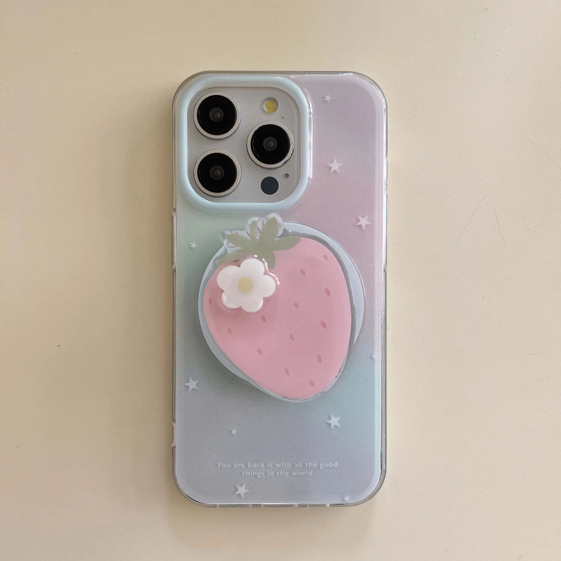 Gradient Shell Magnetic Stand Holder Cartoon Strawberry Phone Case