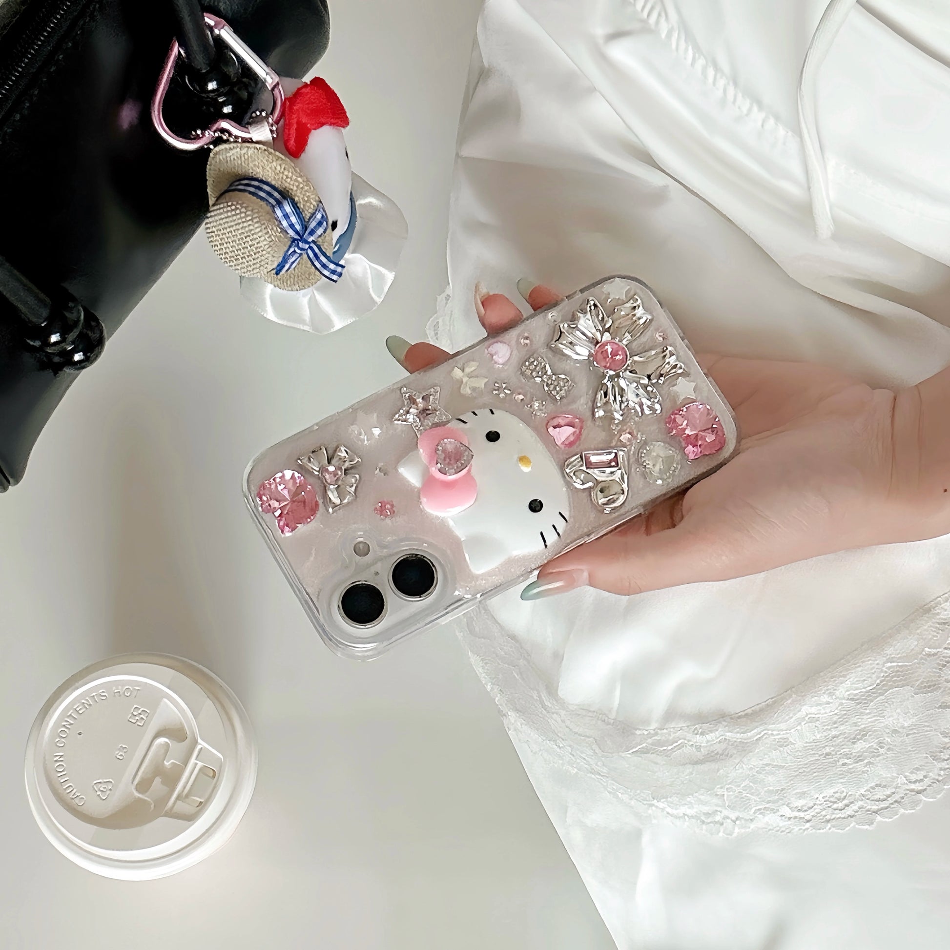 Elevate your device with timeless charm and sparkle. This Hello Kitty phone case combines playful nostalgia with sophisticated embellishment, featuring glittering diamond rhinestones and an iconic bow accent. Crafted for style-conscious users who refuse to compromise on protection, the case delivers reliable safeguarding while making a bold fashion statement. Perfect for fans seeking to express their personality through everyday accessories.