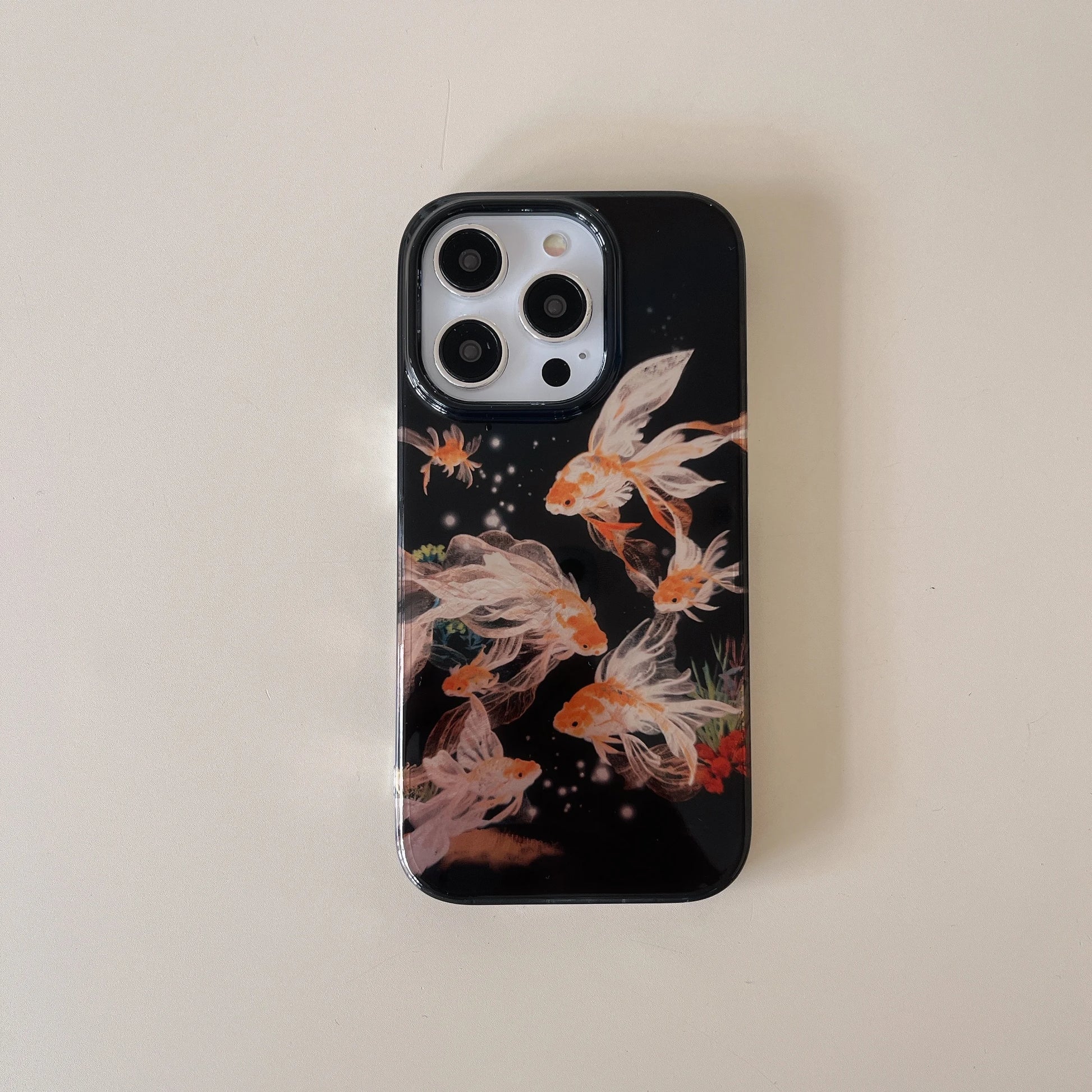 Elegant Black Glossy Koi Fish Phone Case With Glacial Texture