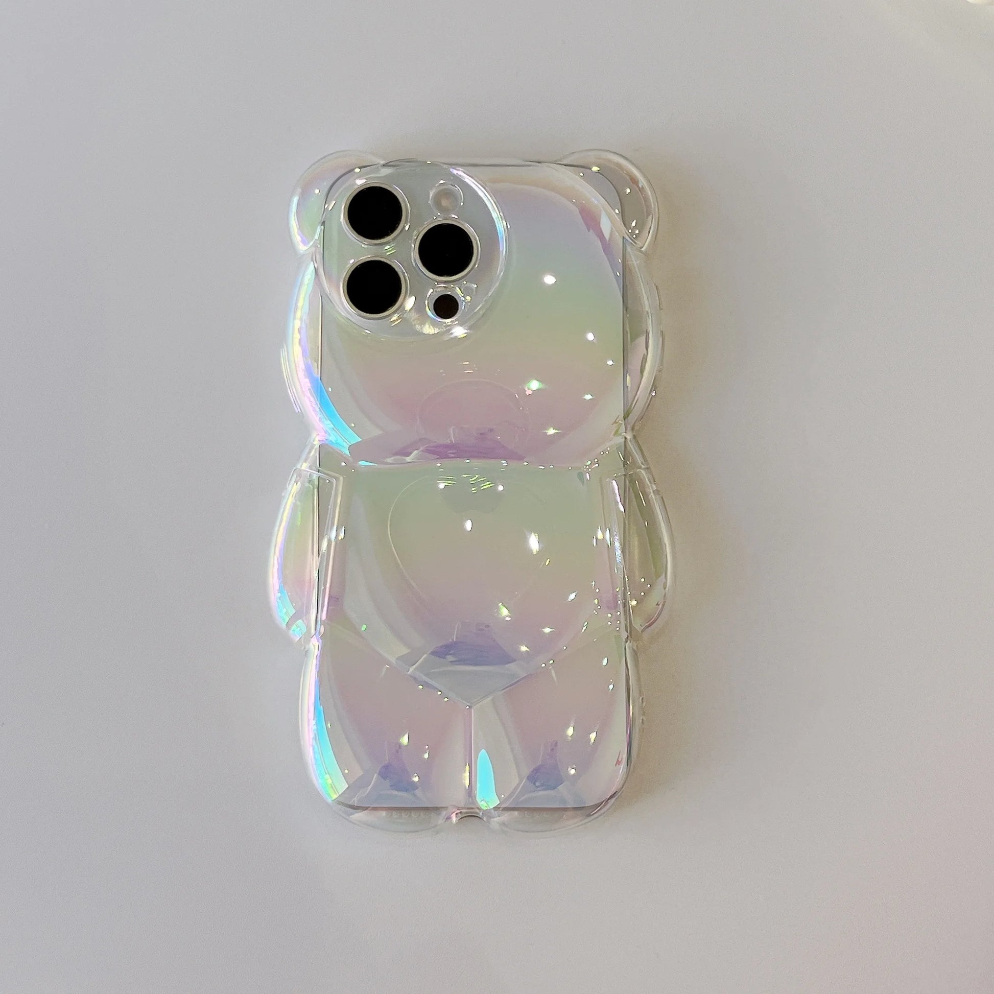 INS Cute 3D Gradient Electroplated Bear Phone Case Suitable For iPhone