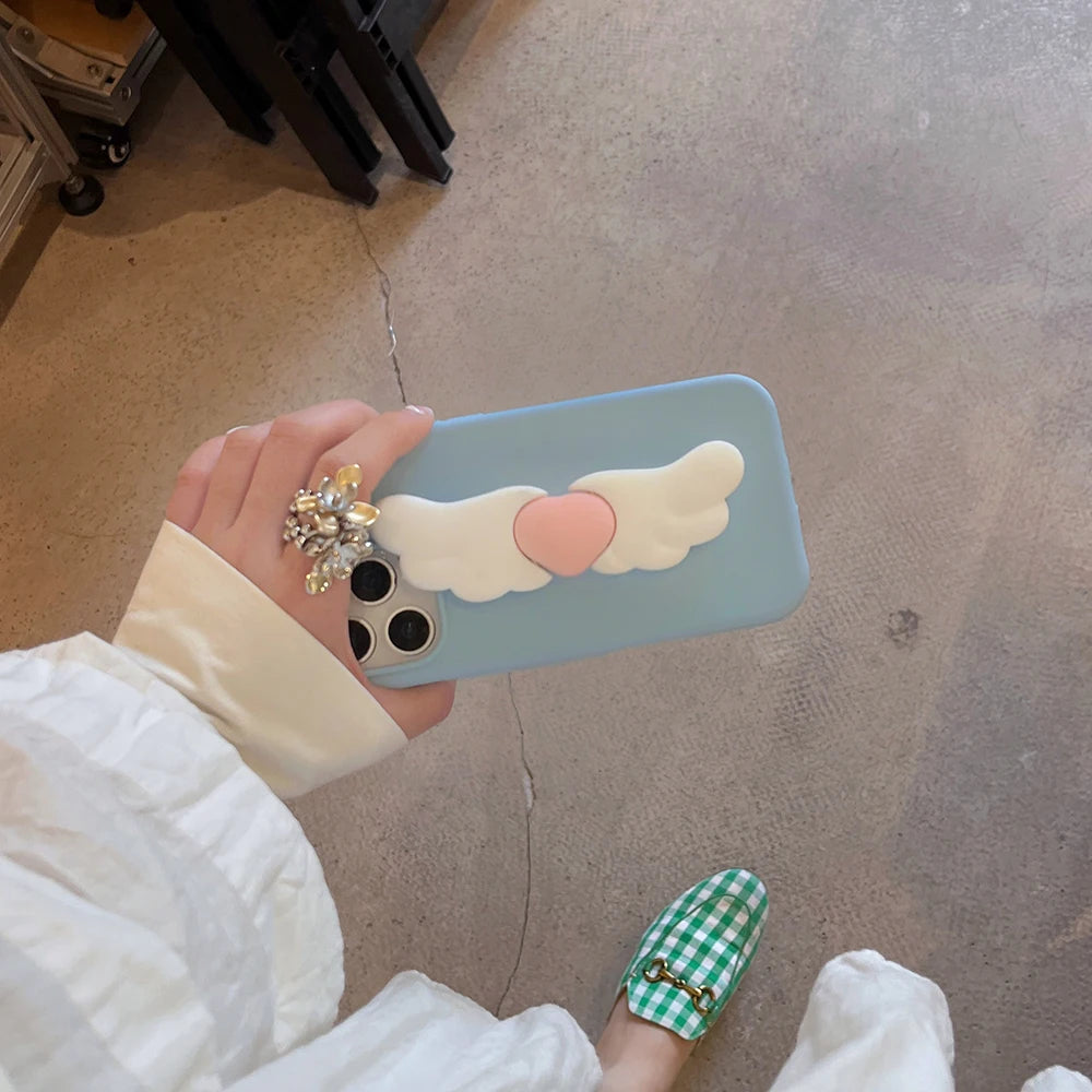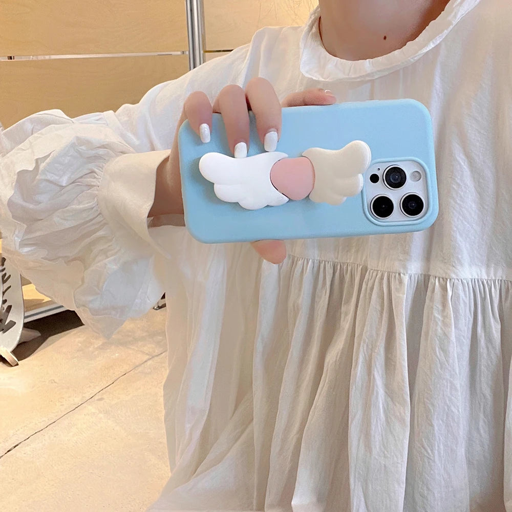 Kawaii 3D Angel Wings Soft Silicone Case With Stand Holder Cover Phone Case