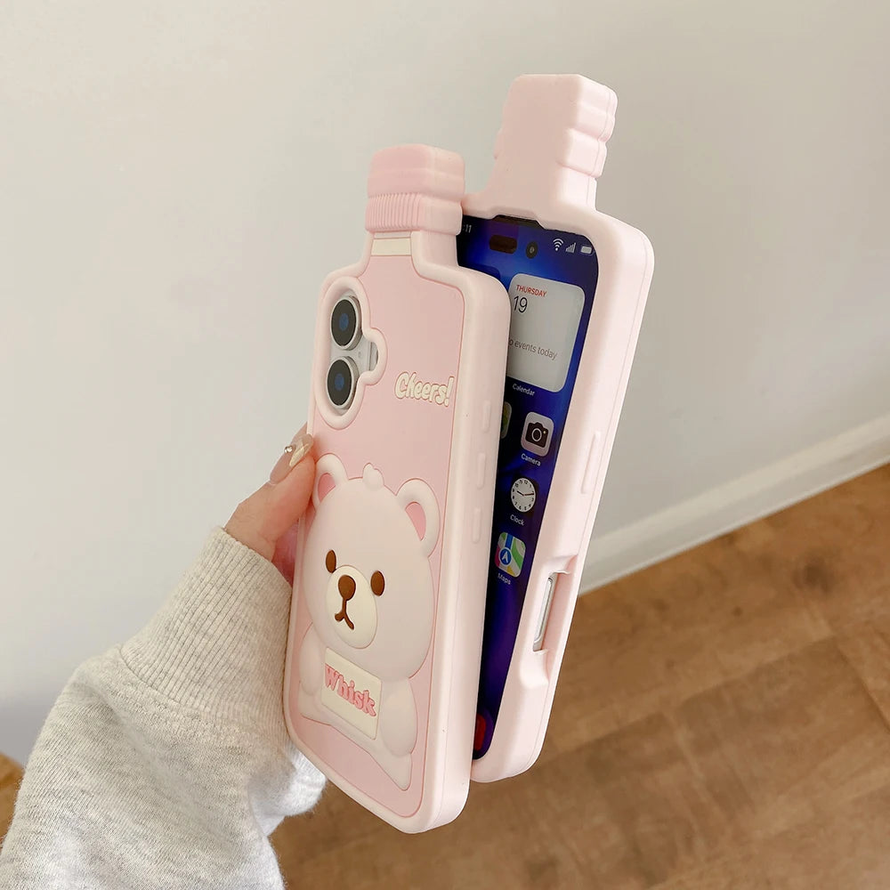 Kawaii 3D Cartoon Bear Wine Bottle Soft Silicone Phone Case For iPhone