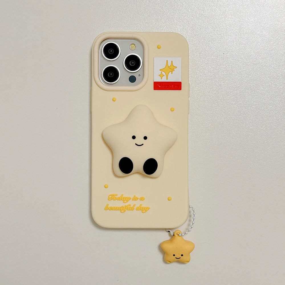 Elevate your iPhone protection with this charming silicone case featuring whimsical moon and star designs. The soft, flexible silicone material absorbs impact while maintaining a slim profile, keeping your device safe from daily wear and tear. The integrated holder pendant adds functionality and style, allowing for convenient carrying or attachment to bags and accessories. Perfect for those seeking a blend of personality and practical defense, this case combines kawaii aesthetics with reliable durability. Compatible with iPhone models, it's an ideal choice for users who refuse to compromise between fashion and function.