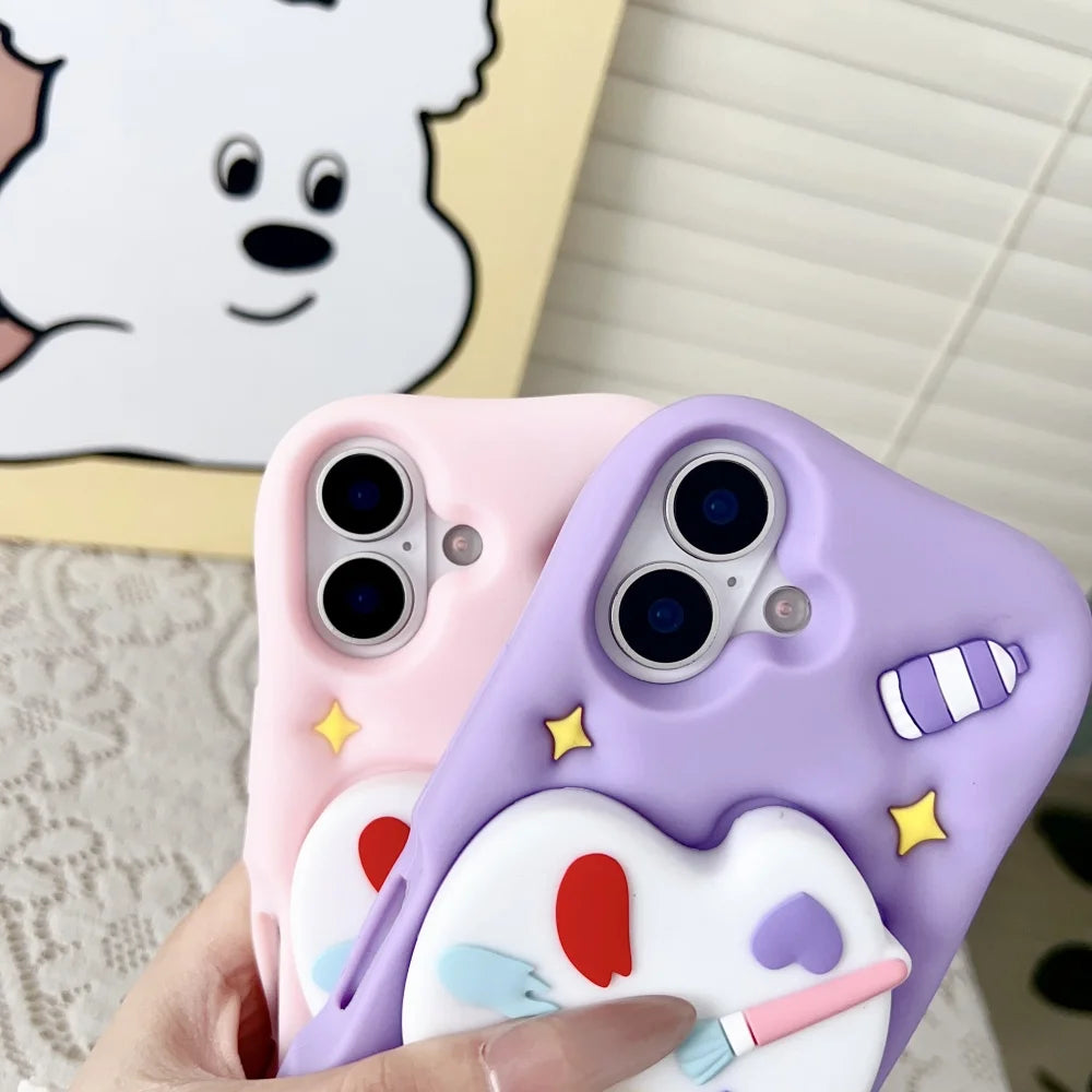 Korean 3D Color Painting Telescopic Colorful Bracket Case For iPhone