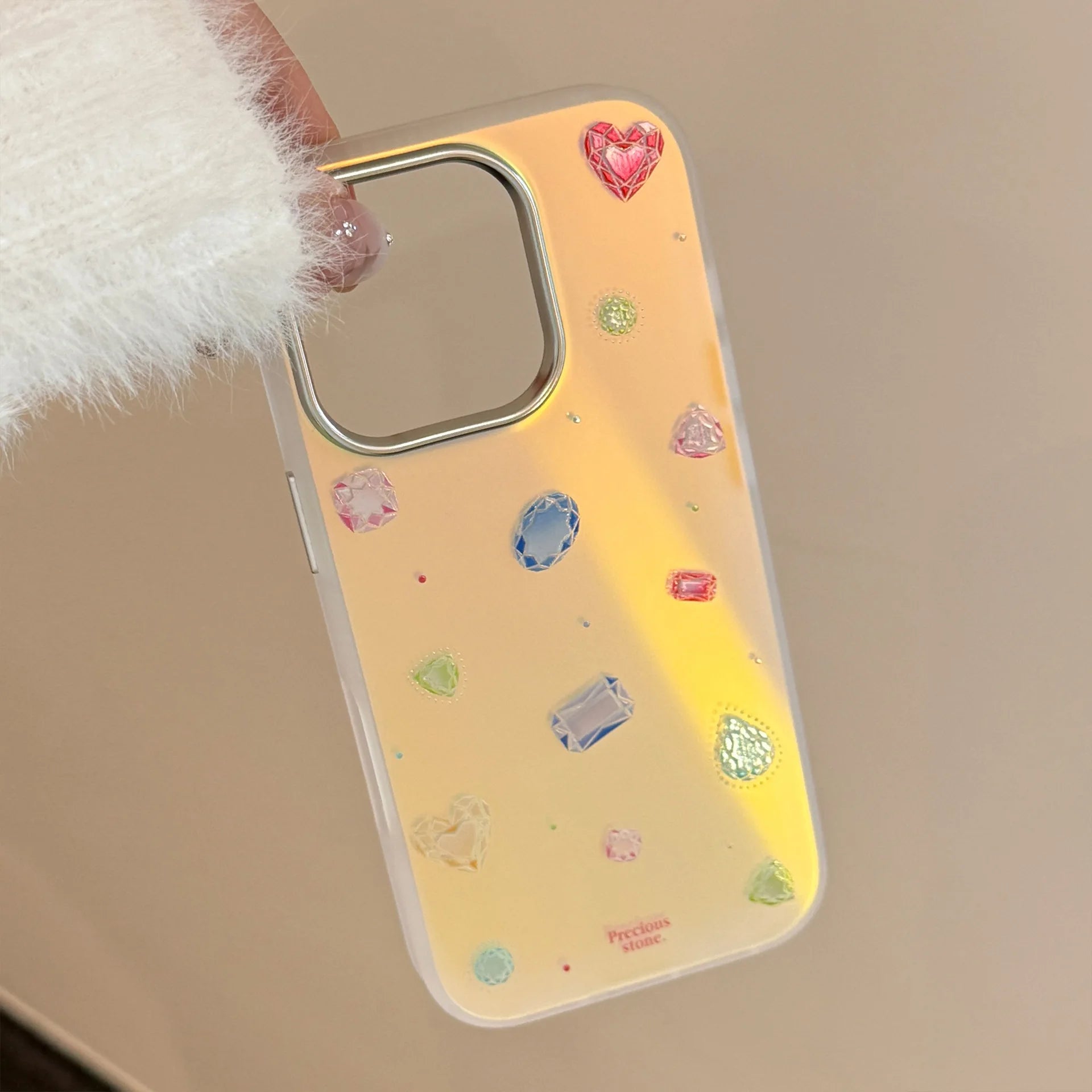 Korean Colorful Gemstone Pattern Plating Laser Phone Case For iPhone