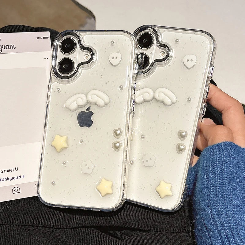 Lovely Stars Heart Angel Wings Bling Phone Case