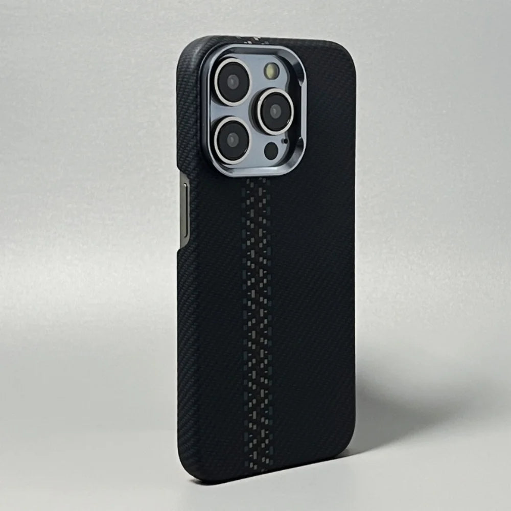 Engineered for durability and style, this premium iPhone case combines genuine Kevlar and carbon fiber patterns with high-grade polycarbonate construction. The rigid hard shell design absorbs impact while maintaining a sleek, sophisticated aesthetic. Precision-fit engineering ensures seamless access to all ports and buttons. Perfect for professionals and enthusiasts who demand both protection and refined elegance in their everyday carry.