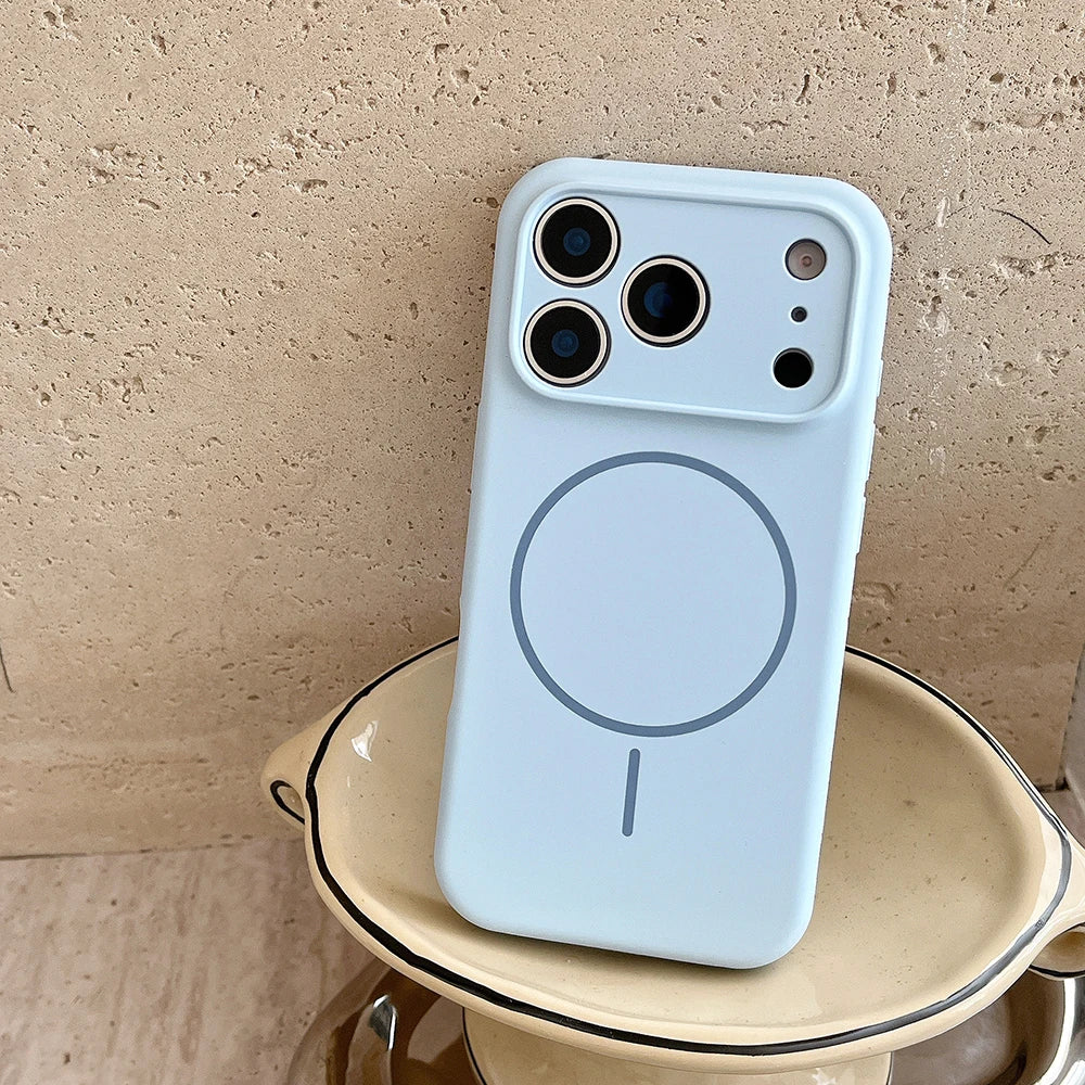 # MagSafe Magnetic Silicone iPhone Case with Lens Protection Experience seamless wireless charging and accessory compatibility with this MagSafe-enabled silicone case. The integrated magnetic ring aligns perfectly with MagSafe chargers, car mounts, and wallets for effortless attachment and removal. Reinforced lens protection guards your camera from impacts and scratches without compromising photo quality. The premium silicone construction delivers superior grip and shock absorption, while maintaining a slim profile. Compatible with all standard MagSafe ecosystem products, this case combines protective engineering with modern convenience.