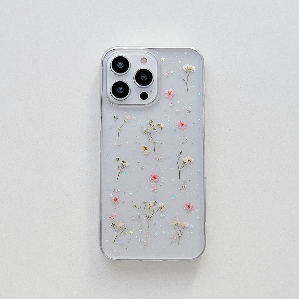 Real Dry flower Phone Case Preserve nature's beauty with this distinctive phone case featuring genuine dried flowers encased in protective resin. Each piece showcases authentic botanical elements—delicate petals and stems—creating a one-of-a-kind aesthetic that evolves subtly over time. The durable construction shields your device from daily impacts while the transparent design lets the floral arrangement take center stage. Perfect for those seeking organic elegance without sacrificing functionality. A conversation starter that combines artisanal craftsmanship with reliable phone protection.